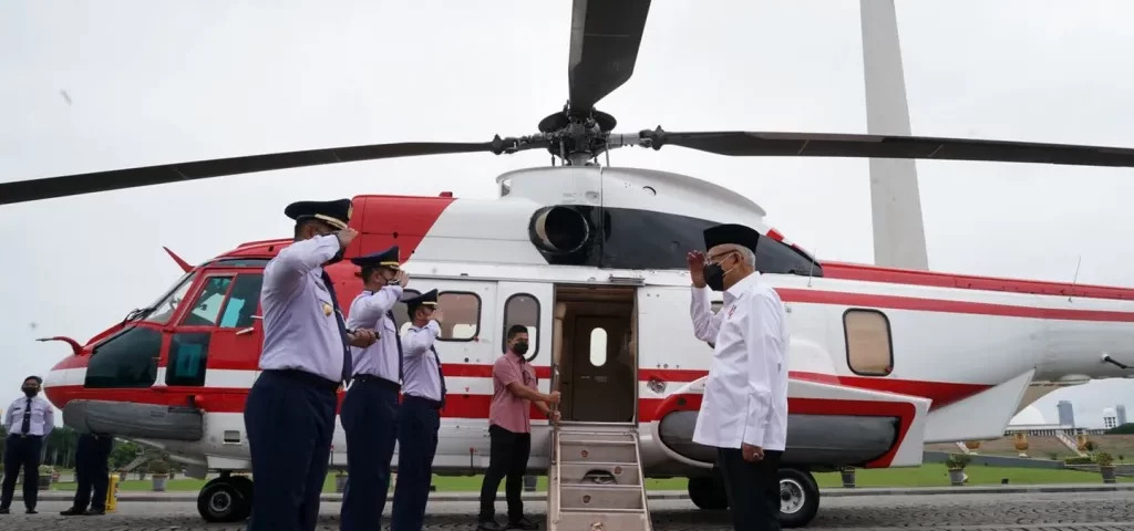 Menggunakan Helikopter Kepresidenan Super Puma VVIP, Wapres beserta rombongan terbatas lepas landas dari Lapangan Monumen Nasional Jakarta menuju Helipad Lapangan Pesanggrahan, Kecamatan Munjul, Kabupaten Pandeglang, Banten, sekitar pukul 08.30 WIB.